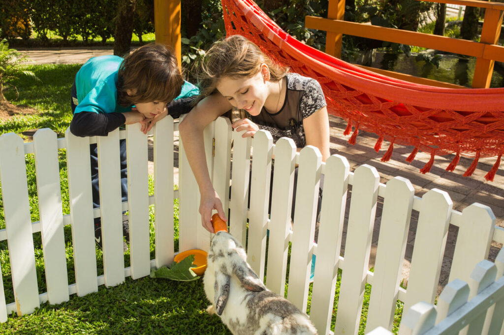 E para encerrar o feriado em grande estilo, no domingo de Páscoa, convidamos toda a família a participar da emocionante atividade de alimentar os coelhos no jardim do hotel.